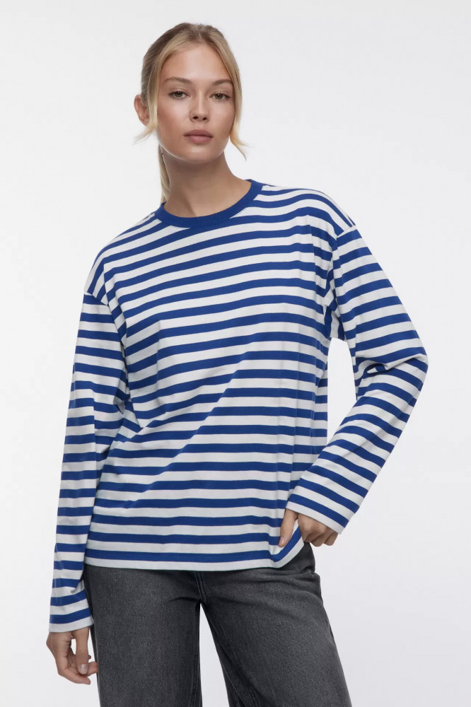 Легкая хлопковая оверсайз-футболка с длинными рукавами идеально подойдет для суперудобных кэжуал-луков с твоими любимыми джинсами, брюками, юбками или шортами. Разбавь свои повседневные, школьные, спортивные или уличные аутфиты стильным лонгсливом из натуральной хлопковой ткани, который станет неотъемлемой частью твоего гардероба благодаря его универсальности. Свободный хлопковый оверсайз-джемпер в полоску из тонкой, дышащей и мягкой ткани для расслабленных повседневных луков, в которых тебе будет максимально комфортно.