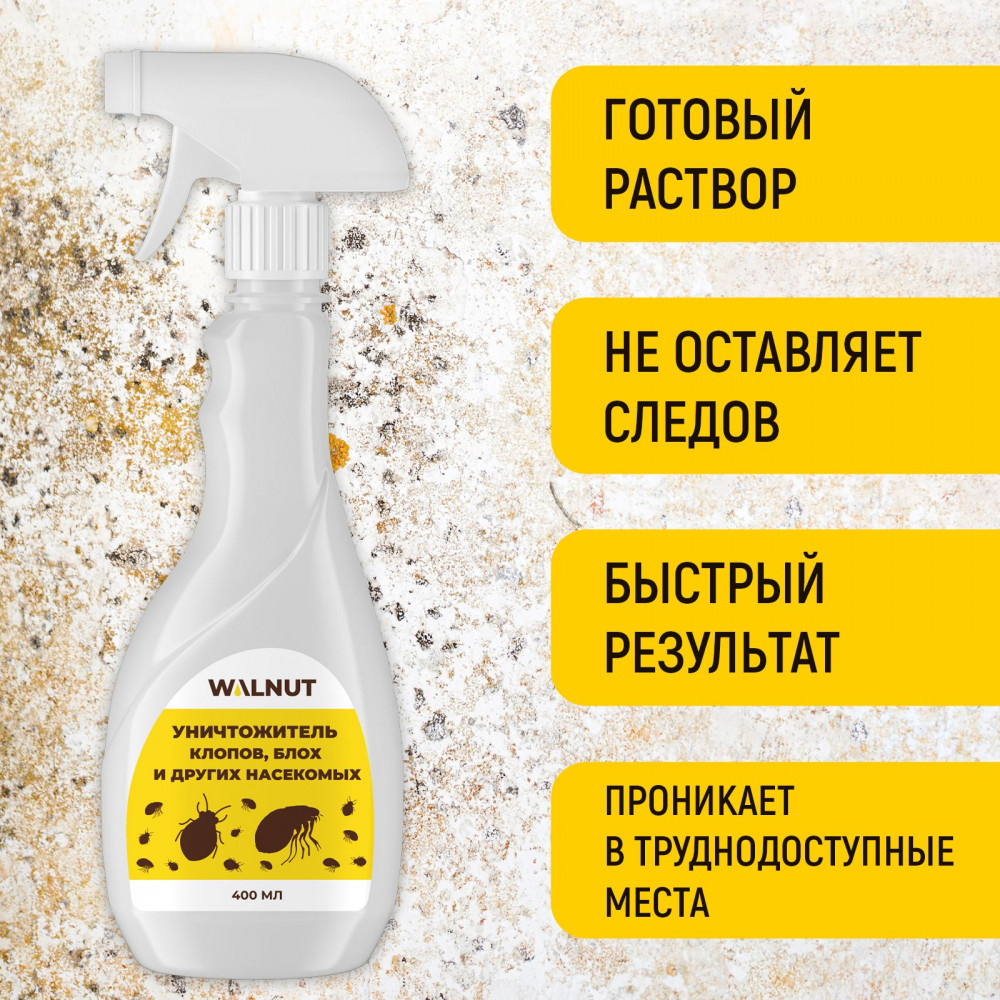 WALNUT Средство для уничтожения насекомыхВ данный момент этот товар отсутствует в продаже. Возможно, у нас найдется аналогичный или похожий товар здесь. Эффективное средство для борьбы против комплекса насекомых: клопов, блох, крысиных клещей, тараканов и муравьев. Жидкое средство также уничтожает крылатых вредителей: мух, комаров и ос. Спрей без запаха и не оставляет следов. Он безопасен для людей, животных, комнатных и уличных растений. |