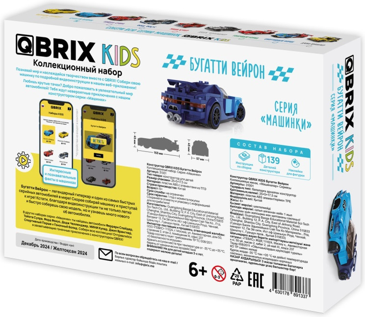 💳 Оплатить за товар можно при получении 🇰🇿 Есть бесплатная доставка по Казахстану от 1 дня 🎁 Копите бонусы с каждой покупки Серия: Kids Qbrix Kids — серия ярких детских конструкторов. В каждом наборе тебя ждут прикольные фигурки, которых ты можешь собрать с помощью понятной видеоинструкции с интересными фактами о каждом из них. Пошаговые видеоинструкции можно смотреть с любого устройства: телефона, планшета или компьютера. Также в каждый набор вложены бумажные инструкции с понятными схемами сборки. |