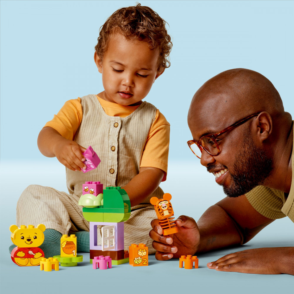 • 3 игрушки LEGO® DUPLO®, которые можно собирать из животных — включает в себя культовый конструктор LEGO DUPLO Disney фигурки: Винни-Пух, Тигра и Пятачок, подарки и домик на дереве — все это создает атмосферу веселой творческой игры;