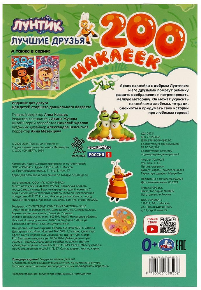 💳 Оплатить за товар можно при получении 🇰🇿 Есть бесплатная доставка по Казахстану от 1 дня 🎁 Копите бонусы с каждой покупки Серия: 200 наклеек Альбом наклеек «Лунтик. Лучшие друзья» из серии «200 наклеек» ТМ «УМка» станет прекрасным подарком для маленьких фантазёров. Ребёнок с удовольствием будет приклеивать яркие стикеры с изображением милых героев известного мультсериала про Лунтика и его друзей, украшая ими альбомы и тетради или создавая на бумаге свои собственные удивительные истории с их участием. |