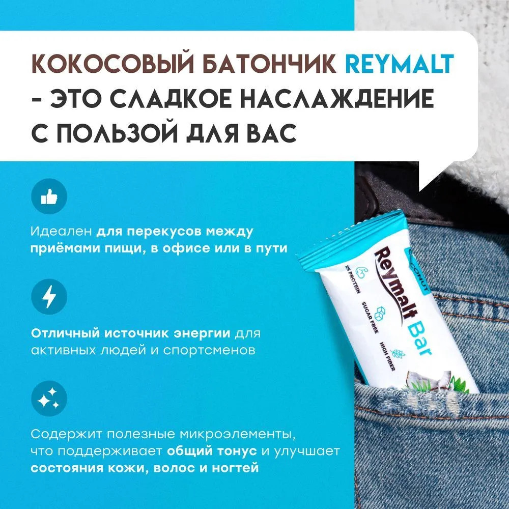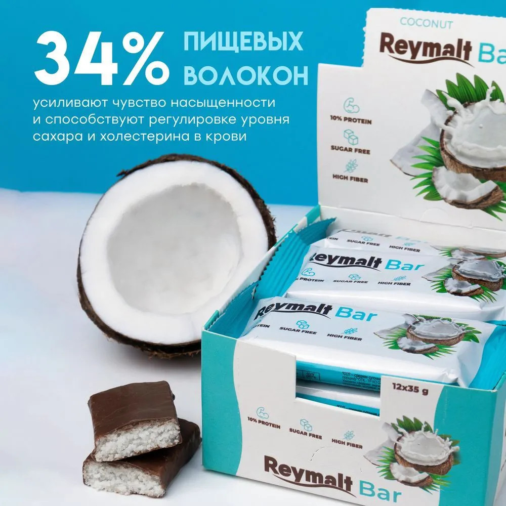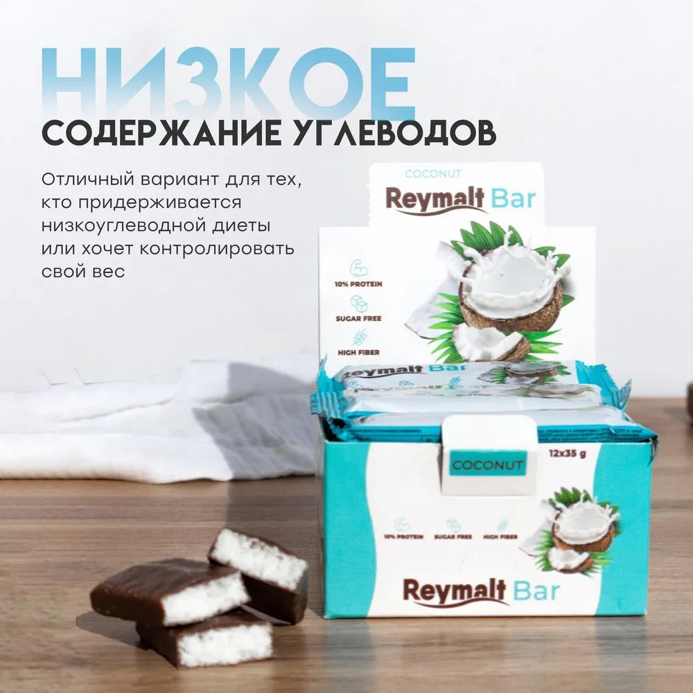 Откройте для себя неповторимый вкус Reymalt кокосовых батончиков без сахара в шоколаде. Каждый батончик весом 35 грамм выполнен с использованием натуральных ингредиентов, что делает их отличным выбором для здоровья и удовлетворения сладкого наслаждения. Этот продукт идеально подходит для тех, кто следит за уровнем сахара в своем рационе, но не хочет отказывать себе в десертах. В упаковке содержится 12 штук. Продукт можно взять с собой на работу, в спортзал или в поездку, что делает шоколадки отличной закуской для активного образа жизни. Легкая и подвижная упаковка позволит вам наслаждаться шоколадным удовольствиями в любом месте и в любое время.