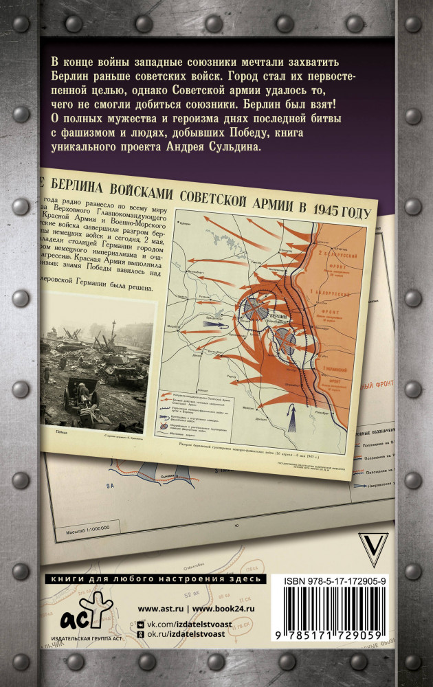💳 Оплатить за товар можно при получении 🇰🇿 Есть бесплатная доставка по Казахстану от 1 дня 🎁 Копите бонусы с каждой покупки Серия: Хроника Победы В конце войны западные союзники мечтали захватить Берлин раньше советских войск. Город стал их первостепенной целью, однако Советской армии удалось то, чего не смогли добиться союзники. Берлин был взят! О полных мужества и героизма днях последней битвы с фашизмом и людях, добывших Победу, книга уникального проекта Андрея Сульдина. |