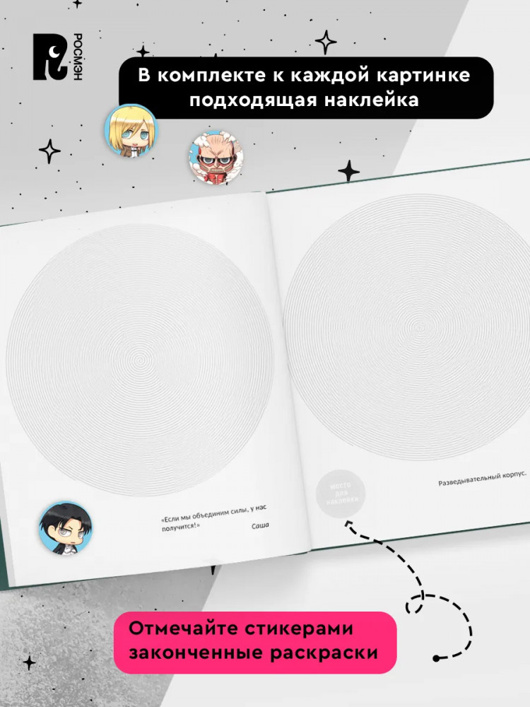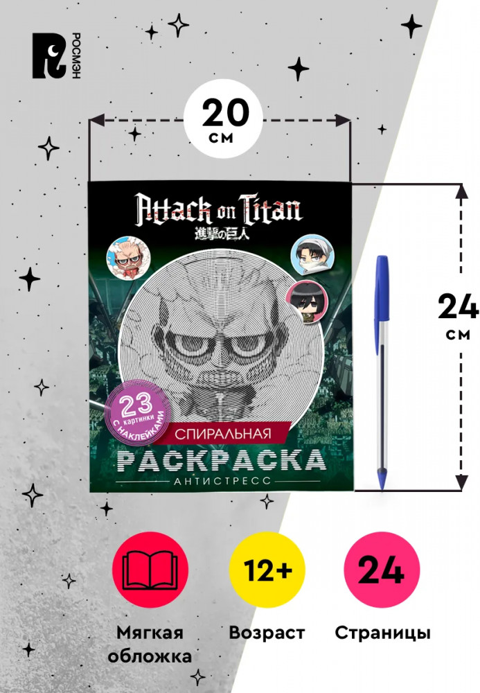 💳 Оплатить за товар можно при получении 🇰🇿 Есть бесплатная доставка по Казахстану от 1 дня 🎁 Копите бонусы с каждой покупки Серия спиральных раскрасок-антистресс поможет успокоиться и расслабиться. 23 зашифрованные картинки завладеют вашим вниманием, как только карандаш коснется спирали. В комплекте к каждой картинке вы найдете подходящую наклейку. Подбирайте стикеры и отмечайте ими законченные картинки, приклеив на страницу. Отвлекитесь от ежедневной суеты вместе с любимыми героями-чиби популярного аниме «Атака Титанов». |