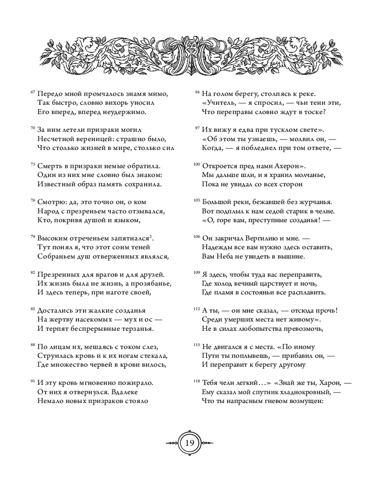 Описывая свою эпическую одиссею по многоэтажному загробному миру с наставником Вергилием, Данте создает широкое культурное полотно, суммирующее средневековые представления об истории и ее выдающихся фигурах, религии, философии, политике и науке. Однако ценность поэмы не исчерпывается историческим интересом. Образы Данте крепко вплетены в ткань общемировой культуры — к ним обращались писатели от Александра Пушкина до Дэна Брауна, великие художники и композиторы, титулованные режиссеры. Над загадками и темными местами поэмы бьются ученые и конспирологи, как над полотнами Босха и Да Винчи, и их азарт можно понять — недавно выяснилось, что модный термин «трансгуманизм» уходит этимологическими корнями в... «Божественную комедию». Данте закрепил классическую иконографию Люцифера, подробно описал адский бестиарий и с дотошностью кабинетного ученого создал настоящую периодическую систему пороков, попутно расквитавшись с оппонентами. Однако его герой отнюдь не циник — во время загробного путешествия он переживает сильнейшие эмоции: боится диких зверей, немеет от ужаса при виде немыслимых страданий грешников в аду, сочувствует знакомым и грешникам поневоле, цепляется за отеческую фигуру Вергилия, замирает в восторге. Впечатляющий психологизм и драматизм повествования (за три столетия до рождения Шекспира!) держат в напряжении до последнего стиха. |