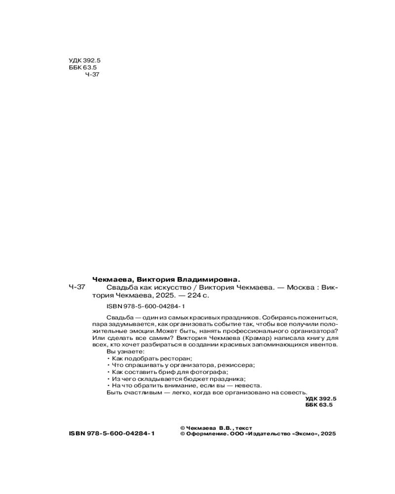 Свадьба как искусствоВиктория Владимировна Чекмаева -20% +129