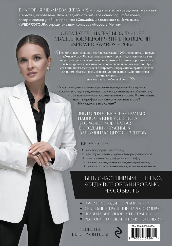 💳 Оплатить за товар можно при получении 🇰🇿 Есть бесплатная доставка по Казахстану 🎁 Копите бонусы с каждой покупки Серия: Практики от экспертов Свадьба — один из самых красивых праздников. Собираясь пожениться, пара задумывается, как организовать событие так, чтобы все получили положительные эмоции. Может быть, нанять профессионального организатора? Или сделать все самим? Виктория Чекмаева (Крамар) написала книгу для всех, кто хочет разбираться в создании красивых запоминающихся ивентов. Быть счастливым — легко, когда все организовано на совесть. |