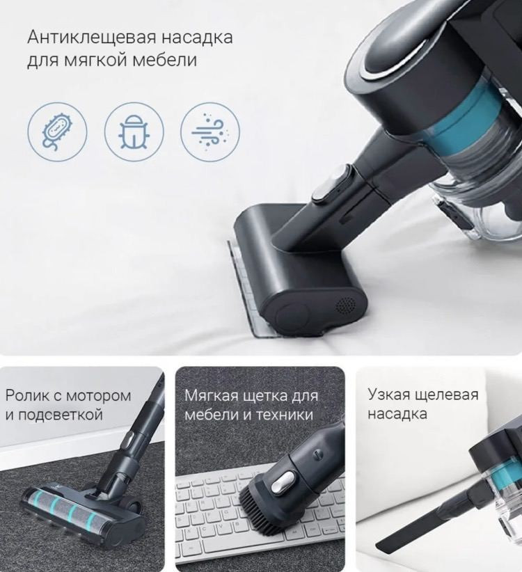 Viomi A9 — это эффективный и практичный пылесос, который идеально подходит для ежедневного использования, обеспечивая высокое качество уборки как на твердых покрытиях, так и на ковровых поверхностях.
