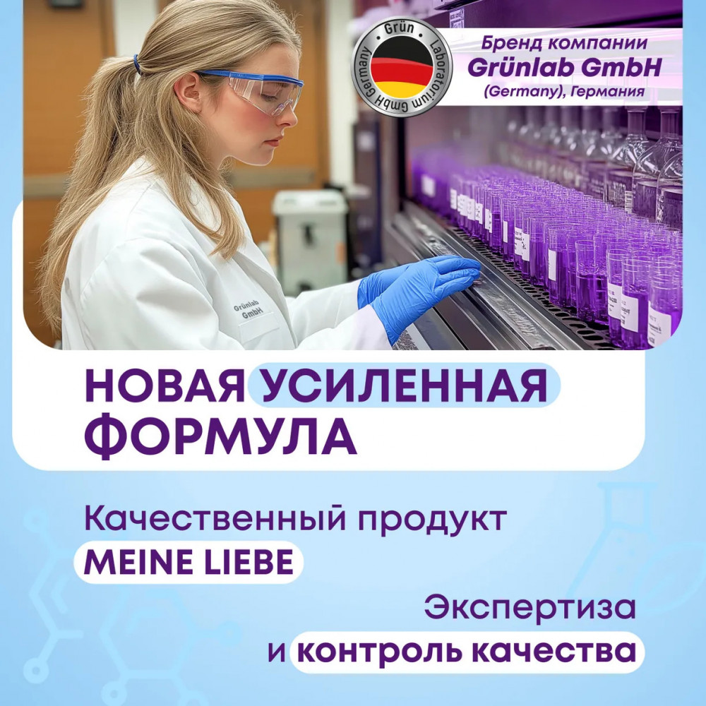 Кондиционер смягчает волокна ткани, разглаживает, снимает статический заряд, сохраняет цвет и структуру волокон. Пользуйтесь нашими средствами, и мы позаботимся о вашем времени, бытовой технике и одежде так же, как вы заботитесь о своих близких. Мы стремимся сделать вашу ежедневную стирку, уборку и мытьё посуды максимально простыми и приятными, чтобы вы всегда были довольны результатом. Бытовая химия Meine Liebe безопасна для домов с автономными канализациями (септиками). Все средства Meine Liebe изготовлены по уникальной формуле под контроль качества компании Grunlab (Германия), что гарантирует их надежность и эффективность.