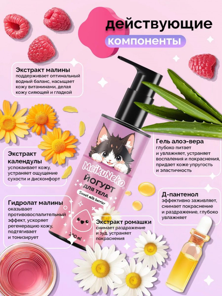 Aqua, Salvia officinalis water, Rubus idaeus water, Cetearyl Alcohol, Cyclopentasiloxane, Gliceryl monostearate,Urea, Panthenol, Ceteareth-20, Cetyl Alcohol, Aloe Barbadensis (Aloe Vera) Leaf Gel, Phenoxyethanol, Ethylhexylglycerin, Rubus Idaeus (Raspberry) Leaf Extract, Calendula Officinalis Flower Extract,Chamomilla Recutita Flower Extract, INOSITOL, Allantoin, Lactic Acid.