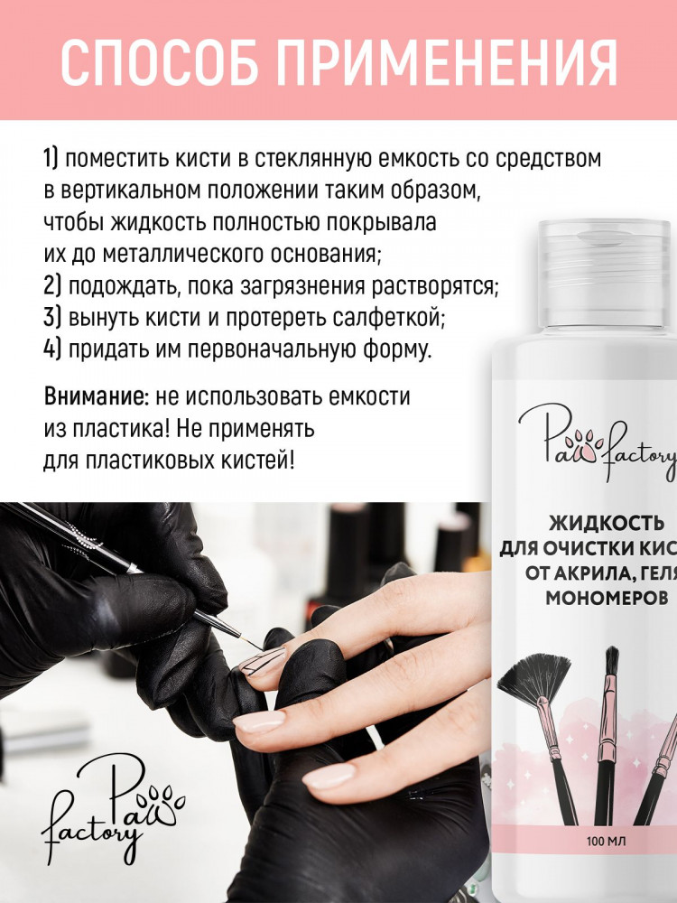 PAW FACTORY Средство для очистки кистей от акрила, геля и мономеров