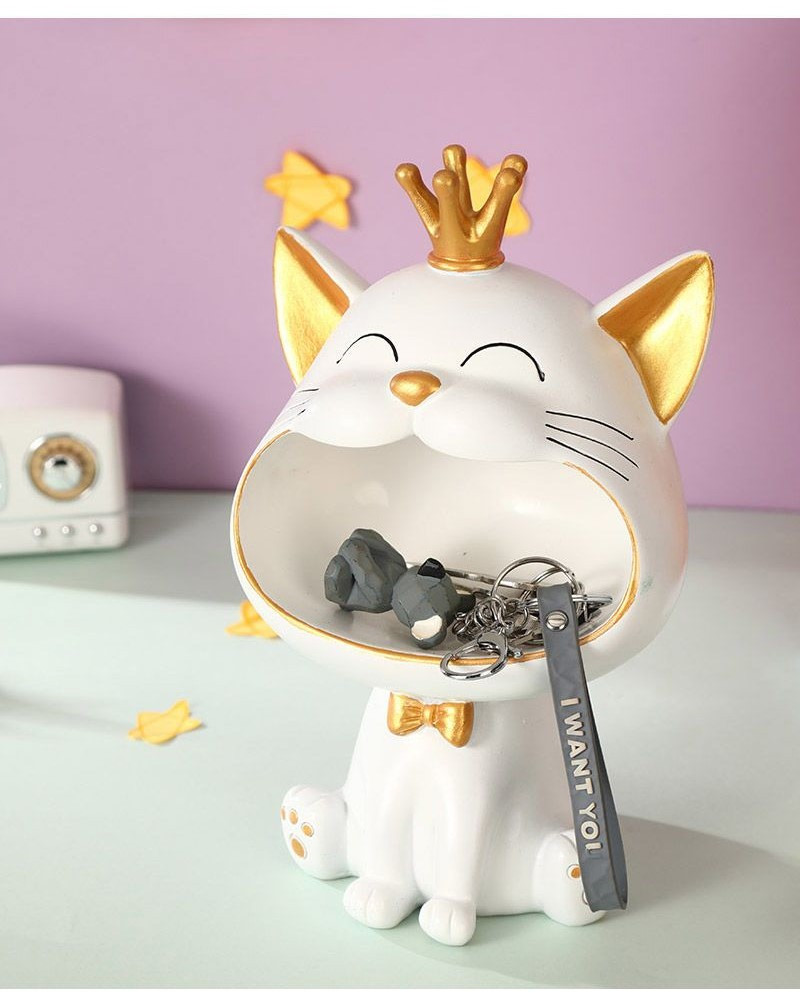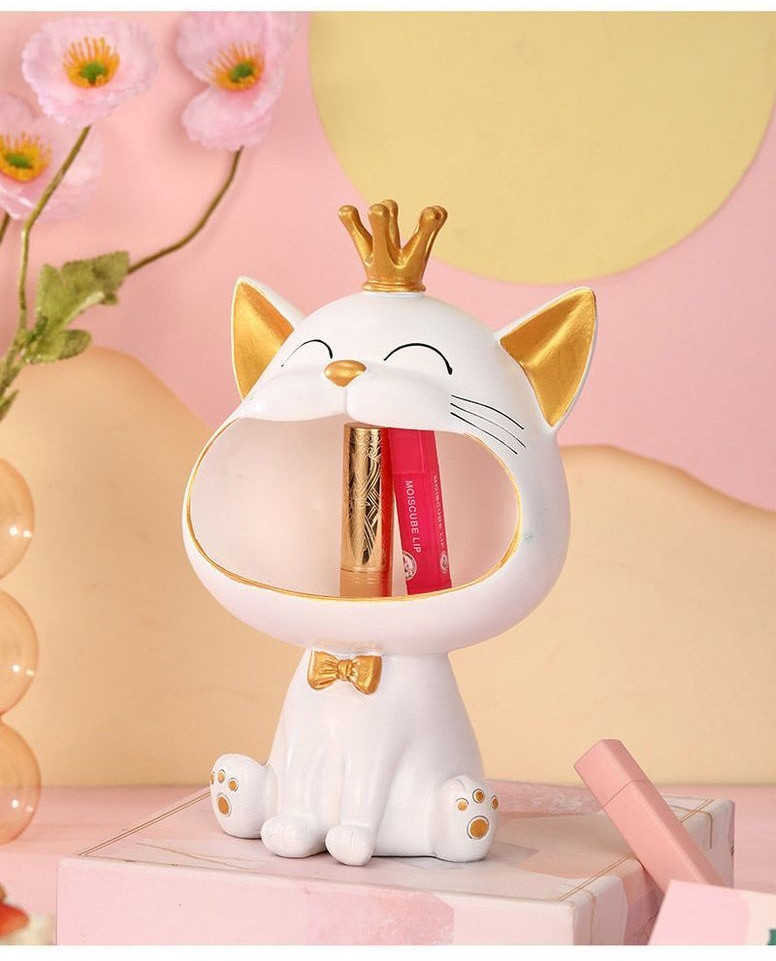 В данный момент этот товар отсутствует в продаже. Возможно, у нас найдется аналогичный или похожий товар здесь. Настольная ключница-конфетница в виде зажмурившегося от удовольствия котика – это стильный и удобный аксессуар для дома. Фигурная модель выполнена из прочного гипса и сочетает в себе оригинальный дизайн и функциональность. Вместительная пасть котика идеально подходит для хранения ключей, визиток, мелочи, детских заколок, аромасаше или сладостей.