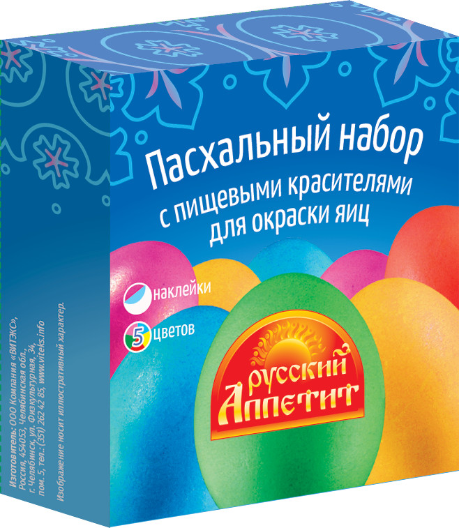Русский аппетит Пасхальный набор с пищевыми красителями и наклейкамиВ данный момент этот товар отсутствует в продаже. Возможно, у нас найдется аналогичный или похожий товар здесь. Один из главных символов Пасхи — окрашенные яйца. Традиционно их красят в луковой шелухе, что придает яйцам символический красный цвет. Но так хочется, чтобы праздничный стол украшали не только красные, но и разноцветные, необычные, расписные крашенки. Самый простой способ — использовать пищевые красители для яиц. |