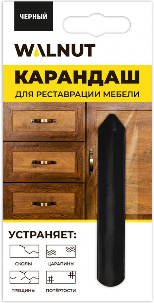 WALNUT Карандаш восковой для мебели, дерева, пластика, цвет черный