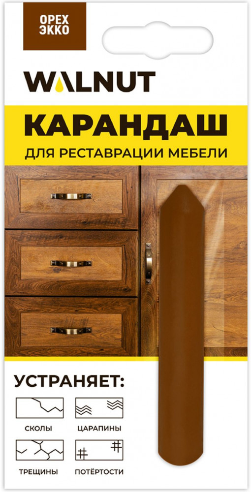 WALNUT Карандаш восковой для мебели, ламината, дерева, пластика, цвет орех экко