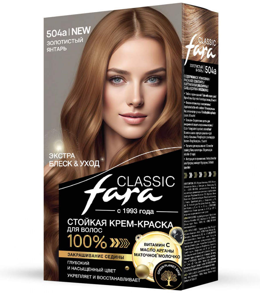 Fara Крем-краска для волос, оттенок 504а Золотистый янтарь
