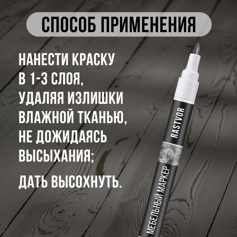 Быстросохнущее покрытие обеспечивает легкость в применении и мгновенное возвращение эстетики к любимым элементам декора. Маркер также можно использовать для отделки стен, напольных и интерьерных покрытий, включая ламинат и паркет, поможет придать им безупречный вид. Этот товар станет отличным помощником в бытовых работах по ремонту, позволяя быстро и легко справляться с мелкими дефектами на различных поверхностях. Его декоративные свойства гармонично сочетаются с функциональностью, благодаря чему, он станет идеальным выбором для ценителей качества и эстетики в интерьере своего дома.