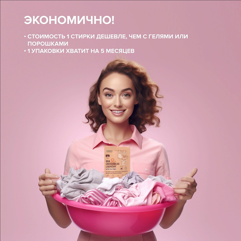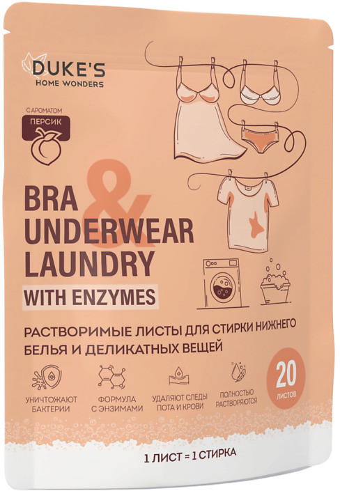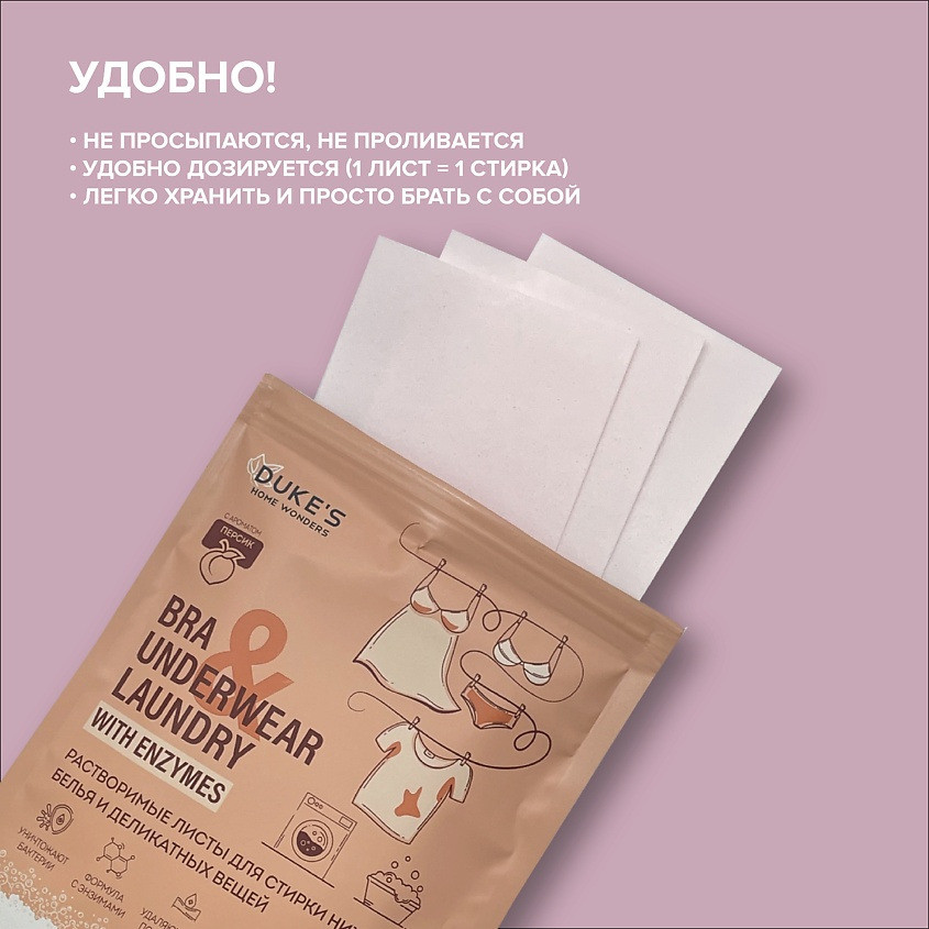 DUKE’S Home Wonders Растворимые листы для стирки нижнего белья и деликатных вещей «Персик»
