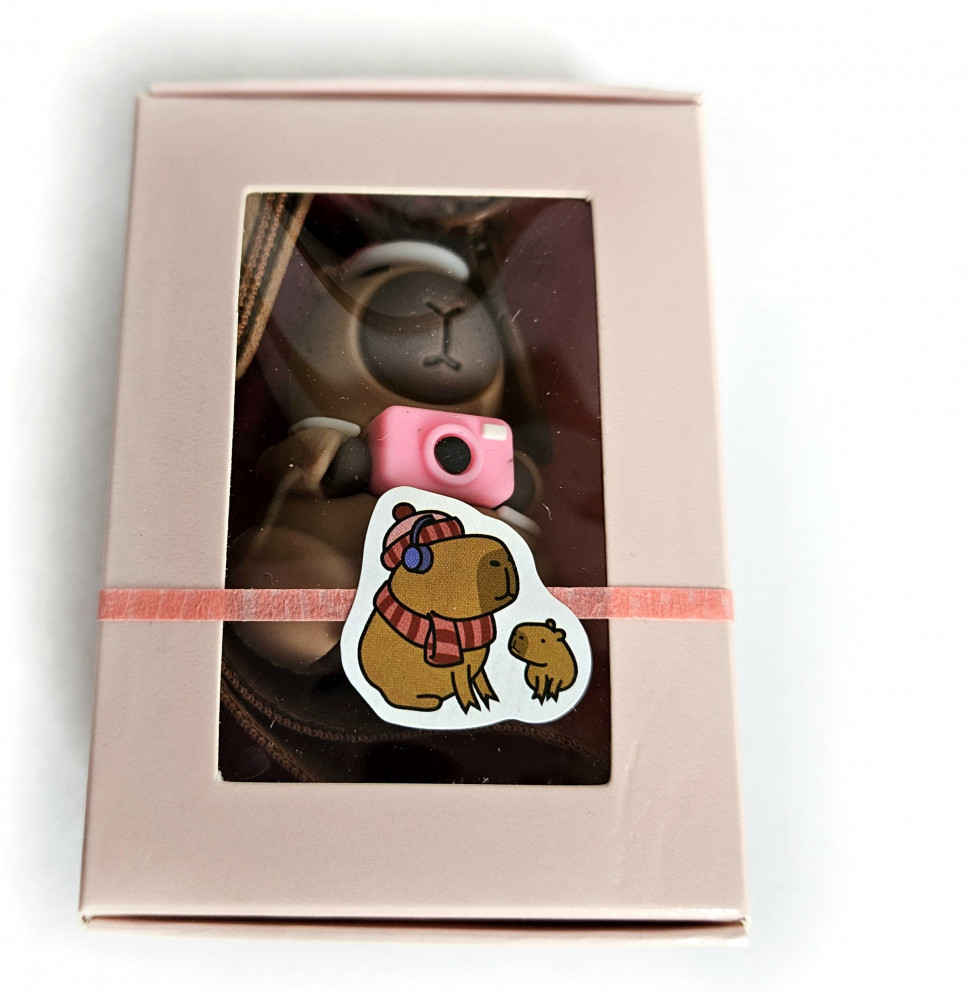 💳 Оплатить за товар можно при получении 🇰🇿 Есть бесплатная доставка по Казахстану от 1 дня 🎁 Копите бонусы с каждой покупки Брелок Капибара с браслетом и карабином подходит для рюкзака, ключей, сумки или пенала. Выполнен из прочного силикона, устойчивого к повреждениям. Оснащён карабином для удобного крепления. Яркий дизайн с розовой камерой делает аксессуар заметным. Отличный подарок для детей и взрослых на любые праздники. |
