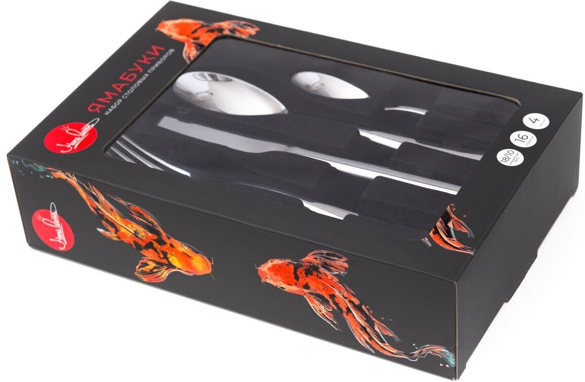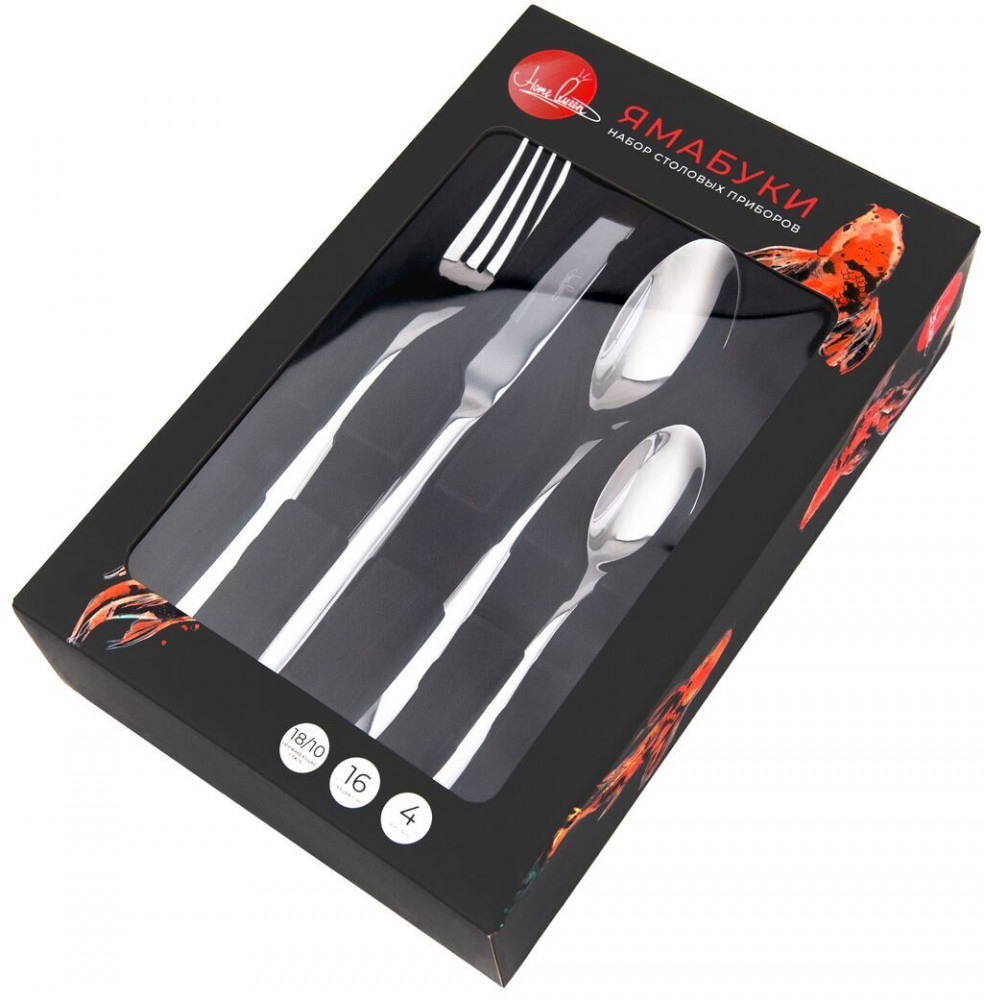 Home Queen Набор столовых приборов «Ямабуки»В данный момент этот товар отсутствует в продаже. Возможно, у нас найдется аналогичный или похожий товар здесь. Серия: Ямабуки Набор столовых приборов на 4 персоны — 16 шт. Столовые приборы из стали марки 18/10 отличаются максимальной устойчивостью к коррозии, деформации и любой температуре: они надолго сохранят свой глянец и блеск, подобный зеркальному. Классические формы, гармонично смягченные округлыми ручками приборов коллекции «Ямабуки», прекрасно дополнят любой стол и подчеркнут вкус хозяев. Коллекция получила свое название в честь разновидности карпов кои — ямабуки — символизирующих удачу, успех и гармонию. Приборы из коллекции «Ямабуки» — это гармония в каждом прикосновении. Вес набора с упаковкой 1,05 кг. |