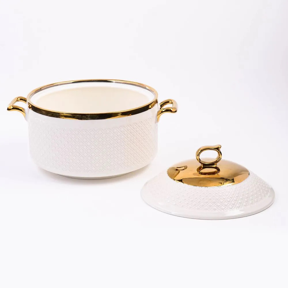Loraine СупницаВ данный момент этот товар отсутствует в продаже. Возможно, у нас найдется аналогичный или похожий товар здесь. Серия: Италия Супница с крышкой — это элегантная кухонная утварь с удобными ручками. Изготовлена из высококачественного фарфора с изысканным внешним видом. Эта посуда — мечта каждой хозяйки. Она идеально подходит для подачи разнообразных блюд: супов, салатов, мяса, горячих блюд и выпечки. Блестящая и переливающаяся на свету ручка на крышке придают этому изделию стильный и современный вид. Изготовленная из прочного стекла, эта ручка устойчива к царапинам и сохраняет свой вид на протяжении долгого времени. Супница с ручками и крышкой обладает рядом преимуществ: она глубокая, безопасная для здоровья, не выделяет вредных веществ при контакте с пищей и долго сохраняет еду теплой. Благодаря использованию высокотехнологичного оборудования, эта кастрюля безупречного качества по доступной цене. Фарфоровая супница для подачи может стать идеальным подарком для мамы, сестры, бабушки и друзей, ведь это не просто красивая посуда, это способ выразить заботу и внимание к близким! |
