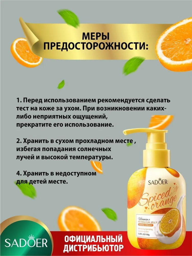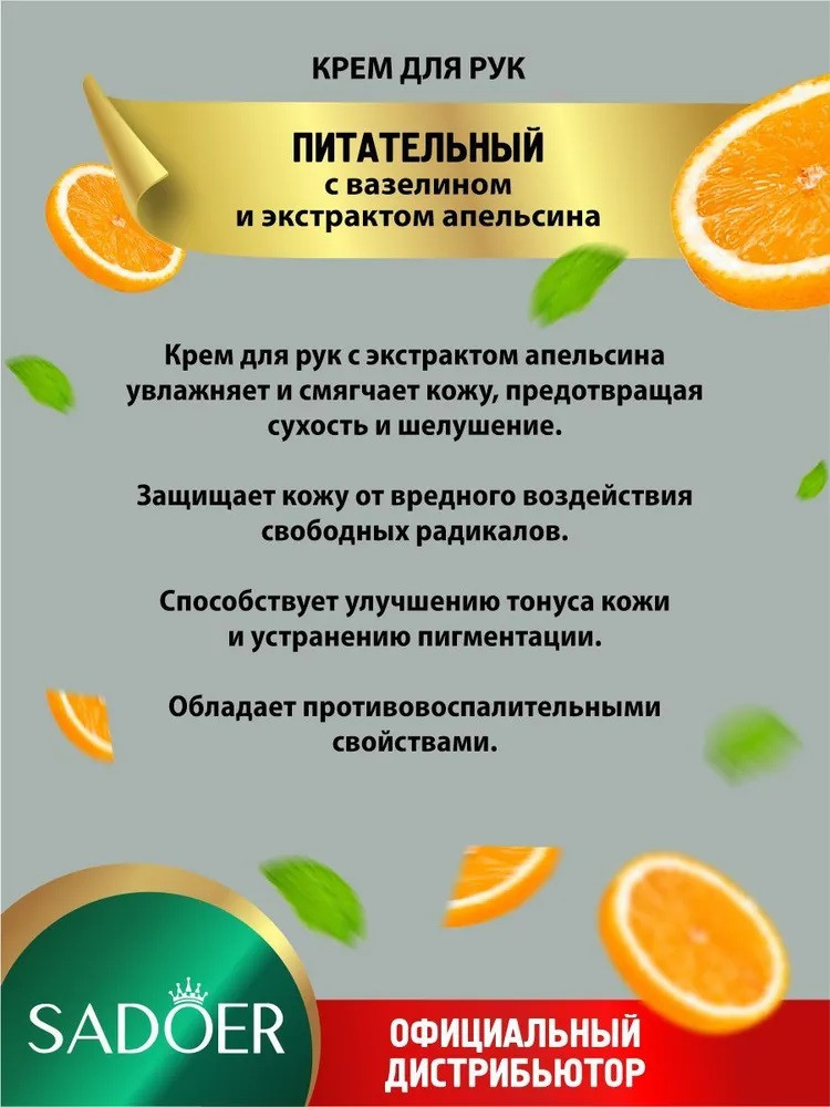 SADOER Питательный крем для рук с вазелином и экстрактом апельсина
