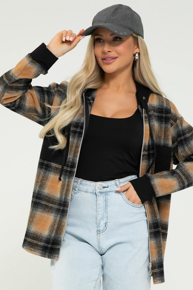 Рубашка из плотной ткани в модную клетку на молнии, с длинным рукавом, накладными карманами и капюшоном прекрасно подходит для повседневного многослойного образа. Сочетая в себе комфорт и уют, она создает новый тренд в одежде и свежий альтернативный вариант для гардероба. Идеально подходит к джинсам, брюкам и шортам.Капюшон выполнен из футера 2х-нитка.