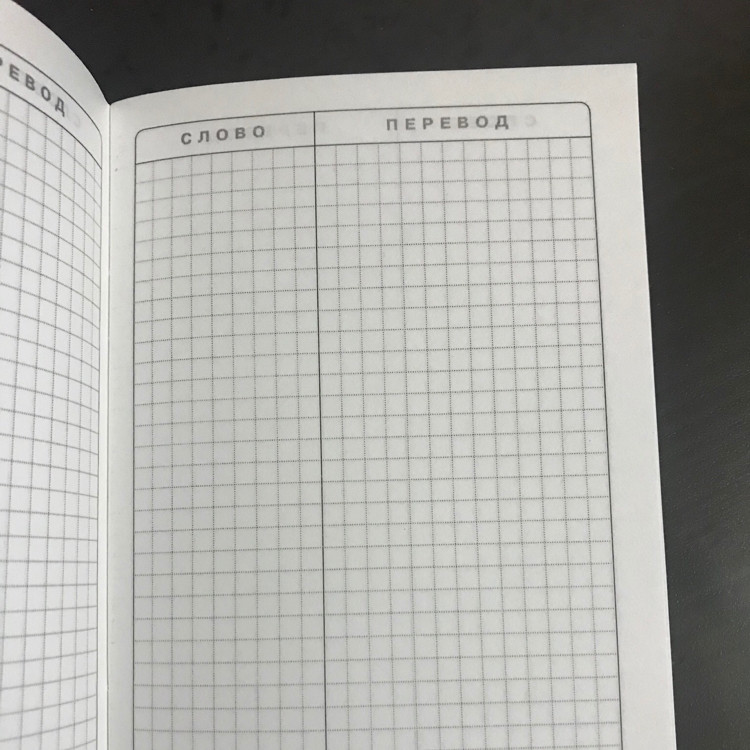 Хороший блокнот, внутри разбит на два отдела, слева - иностранное слово, справа - перевод этого слова, очень удобный формат для запоминания новых слов.