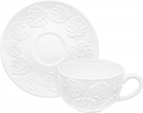 Серия: Тропики Чайная пара Elan Gallery «Тропики» выполнена из белого фарфора в классическом дизайне. Посуда серии украшена рельефным узором в виде тропических листьев. Чайная пара подходит для любителей чая и кофе. Вы сможете насладиться своими любимыми напитками из чашки с изящным рельефным узором и удивить гостей. Используйте блюдце как подставку под чашку. Положите на тарелочку кусочек торта, домашнего пирога или пирожное. Сервировочная тарелка подойдёт не только для десерта, но и закусок: сырной нарезки, сырокопчёной колбасы или свежих овощей и зелени. Посуда из белого фарфора идеально впишется в любой интерьер вашей кухни, её можно использовать как чайный или кофейный набор. Разместите на блюдце кусочки шашлыка или бутерброды, чтобы перекусить за чашечкой кофе. Избегать резких перепадов температур и беречь от механических повреждений. Не рекомендуется применять абразивные моющие средства. Можно использовать в микроволновой печи и мыть в посудомоечной машине. Поставляется в красочной картонной упаковке. Фарфоровая посуда — хороший вариант подарка любой женщине, которая ценит изящную сервировку. Особенно понравится любителям посуды в скандинавском стиле. Серия «Тропики» позволит собрать сервиз в едином стиле и станет украшением вашего дома. |
