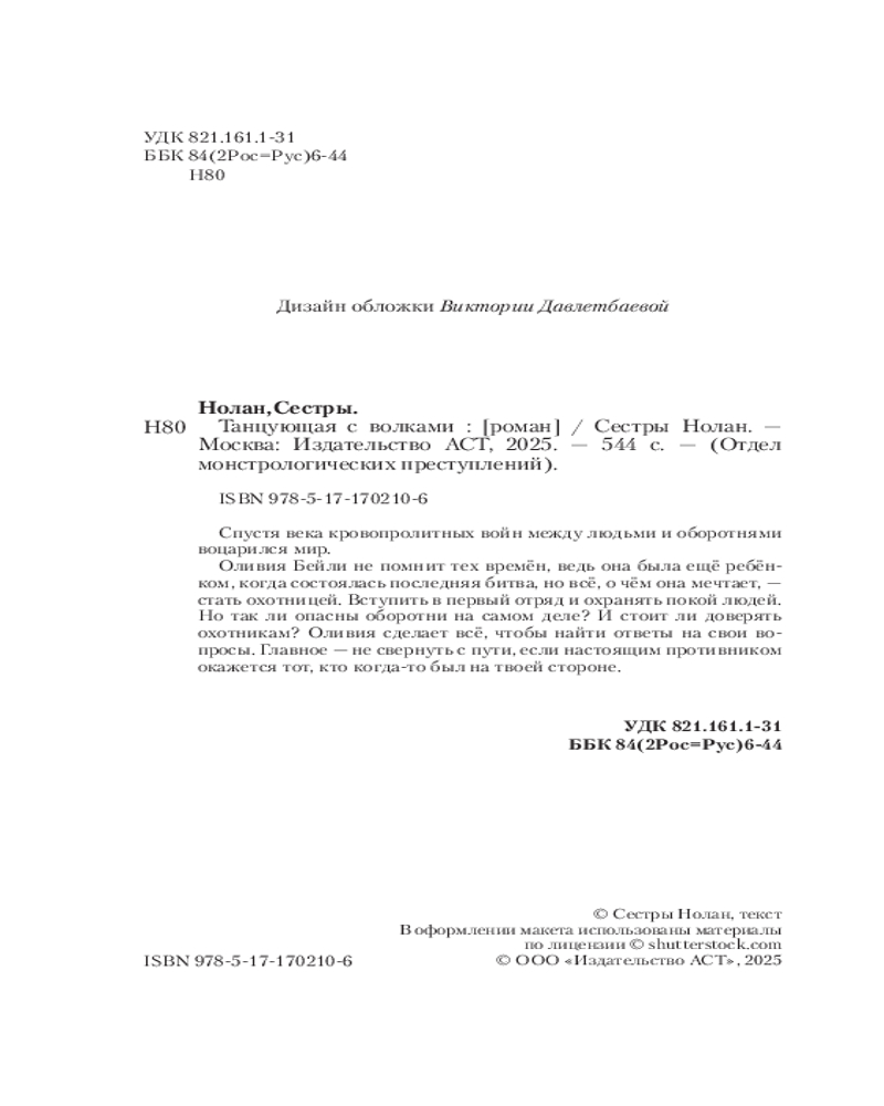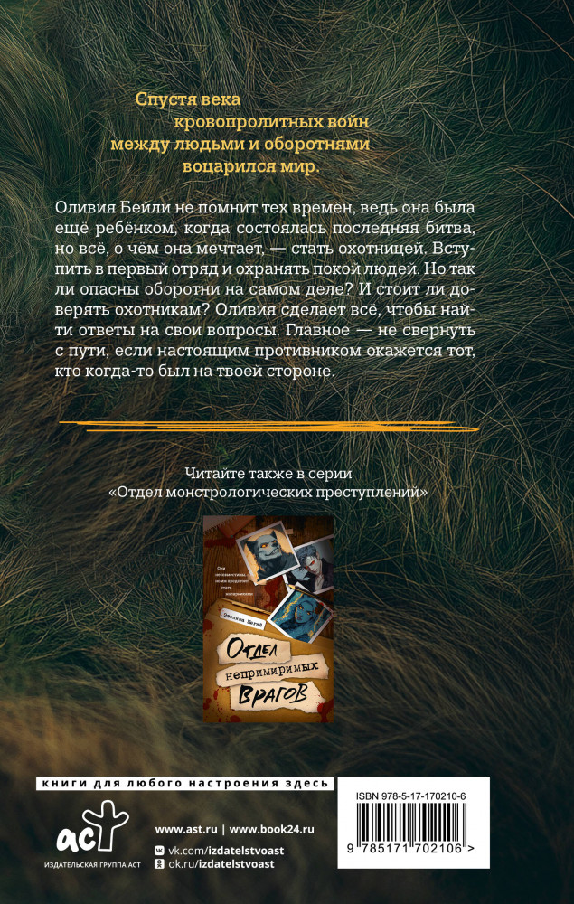 💳 Оплатить за товар можно при получении 🇰🇿 Есть бесплатная доставка по Казахстану от 1 дня 🎁 Копите бонусы с каждой покупки Серия: Отдел монстрологических преступлений Спустя века кровопролитных войн между людьми и оборотнями воцарился мир. Оливия Бейли не помнит тех времён, ведь она была ещё ребёнком, когда состоялась последняя битва, но всё, о чём она мечтает, — стать охотницей. Вступить в первый отряд и охранять покой людей. Но так ли опасны оборотни на самом деле? И стоит ли доверять охотникам? Оливия сделает всё, чтобы найти ответы на свои вопросы. Главное — не свернуть с пути, если настоящим противником окажется тот, кто когда-то был на твоей стороне. |