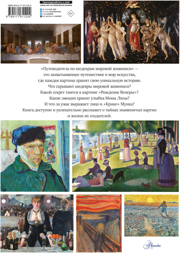 💳 Оплатить за товар можно при получении 🇰🇿 Есть бесплатная доставка по Казахстану от 1 дня 🎁 Копите бонусы с каждой покупки Серия: Путеводитель по миру искусства для детей «Путеводитель по шедеврам мировой живописи» — это захватывающее путешествие в мир искусства, где каждая картина хранит свою уникальную историю. Что скрывает загадочная улыбка Моны Лизы? Какой ужас выражает «Крик» Мунка? Какая тайна кроется в «Рождении Венеры»? Эта книга раскроет секреты шедевров, расскажет о жизни великих художников и удивит вас невероятными фактами. Вы познакомитесь с малоизвестными подробностями и увидите знакомые картины по-новому. Откройте тайны великих полотен! Для широкого круга читателей. |