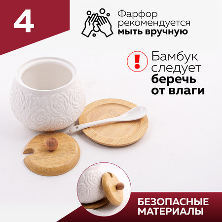 💳 Оплатить за товар можно при получении 🇰🇿 Есть бесплатная доставка по Казахстану от 1 дня 🎁 Копите бонусы с каждой покупки Серия: Италия Погрузитесь в атмосферу уюта и элегантности с изысканной сахарницей, украшенной нежным рисунком розы. Этот стильный аксессуар станет не только функциональным элементом вашего стола, но и настоящим произведением искусства. Сахарница изготовлена из высококачественного фарфора, что придаёт ей изысканный внешний вид и облегчает уход за ней. Основной цвет — белый, который прекрасно сочетается с любым сервизом, а натуральное дерево добавляет тепла и текстуры вашему интерьеру. Объём сахарницы составляет 600 мл, что делает её вместительной для длительного хранения сахара. В комплект входят фарфоровая сахарница, аккуратная ложечка для удобного добавления сахара, деревянная крышка, защищающая сахар от влаги и загрязнений, а также деревянная подставка, предотвращающая загрязнение стола. Это идеальное дополнение как к утреннему чаю, так и к праздничному столу, подчёркивающее ваш уникальный стиль и вкусовые предпочтения. Подарите себе и своим близким частичку изысканности с этим великолепным предметом! |