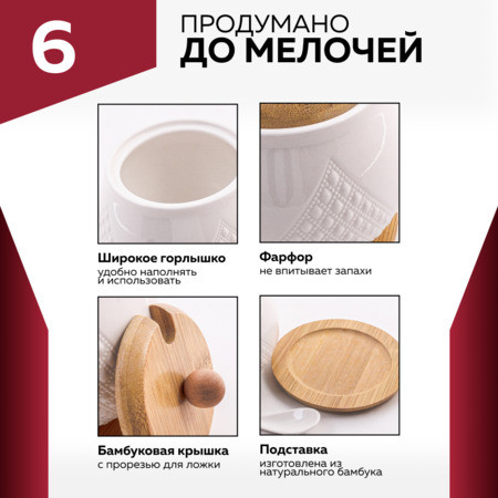 Погрузитесь в атмосферу уюта и элегантности с изысканной сахарницей, украшенной нежным рисунком. Этот стильный аксессуар станет не только функциональным элементом вашего стола, но и настоящим произведением искусства. Сахарница изготовлена из высококачественного фарфора, что придаёт ей изысканный внешний вид и облегчает уход за ней. Основной цвет — белый, который прекрасно сочетается с любым сервизом, а натуральное дерево добавляет тепла и текстуры вашему интерьеру. Объём сахарницы составляет 600 мл, что делает её вместительной для длительного хранения сахара. В комплект входят фарфоровая сахарница, аккуратная ложечка для удобного добавления сахара, деревянная крышка, защищающая сахар от влаги и загрязнений, а также деревянная подставка, предотвращающая загрязнение стола. Это идеальное дополнение как к утреннему чаю, так и к праздничному столу, подчёркивающее ваш уникальный стиль и вкусовые предпочтения. Подарите себе и своим близким частичку изысканности с этим великолепным предметом!