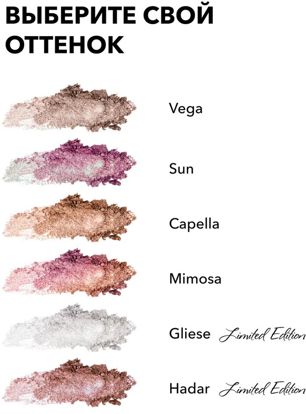 Потрясающие тени, отличный пигмент. Оттенок Вега универсальный и красивый, всем пойдет.