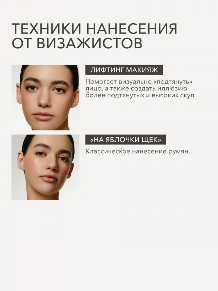 Пигментированные румяна. Хорошо держатся, не стираются.