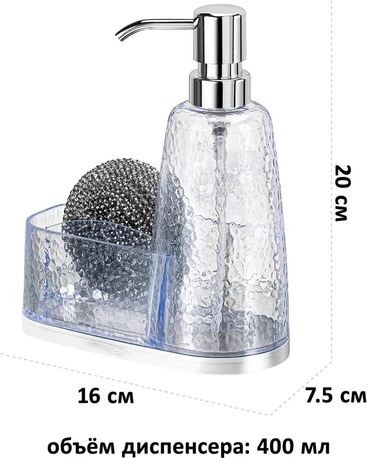 💳 Оплатить за товар можно при получении 🇰🇿 Есть бесплатная доставка по Казахстану от 1 дня 🎁 Копите бонусы с каждой покупки Настольный диспенсер с подставкой под губку подойдёт для жидких моющих средств. Размер изделия — 16×7,5×20 см, объём — 400 мл. Круглая губка поставляется в комплекте. Диспенсер с отделением для хранения губки выполнен из прозрачного пластика. Поверхность пластикового изделия украшена рельефным узором. На дне имеет антискользящую бархатистую подкладку чёрного цвета. Пластиковый дозатор серебряного цвета на бутылке поможет удобно извлекать необходимое количество очищающего средства. Стильный аксессуар с контейнером для губок дополнит вашу кухню и подойдёт к любому интерьеру квартиры благодаря лаконичному дизайну. Наполните ёмкость жидким мылом или жидкостью для мытья посуды и расположите на кухонной раковине или мойке. Имеет отделение с двумя секциями для любых мелочей. Благодаря функциональному кухонному органайзеру вы сможете хранить под рукой всё необходимое для мытья посуды! Не рекомендуется применять абразивные моющие средства. Поставляется в картонной коробке. Декоративный диспенсер станет отличным подарком для родных и близких. Этот набор хозяйственных принадлежностей для мытья посуды — не только практичное, но и эстетичное решение для организации чистоты и порядка в вашем доме. В нашем ассортименте вы найдёте много стильных товаров для дома, в том числе кухонный инвентарь и принадлежности для ванной комнаты. |