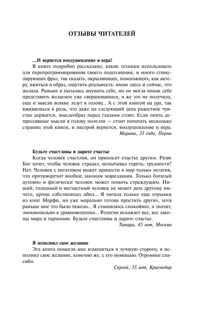 Отзывы «Сила вашего подсознания. Как получить все, о чем вы просите»