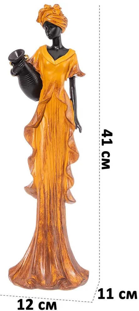 Elan Gallery Статуэтка «Африканская девушка с кувшином»В данный момент этот товар отсутствует в продаже. Возможно, у нас найдется аналогичный или похожий товар здесь. Декоративная статуэтка «Африканская девушка с кувшином» преобразит любое помещение. Размер изделия – 12х11х41 см. Выполнена из полирезина – современного материала, который славится своей лёгкостью, устойчивостью к влаге и солнечным лучам. Он не выделяет веществ и не имеет запаха. Полирезин легко поддаётся обработке, поэтому изделия из него отличаются своей реалистичностью и проработанной детализацией. Высокая стройная девушка одета в длинное платье цвета охры с оборками. На платье нанесены коричневые акценты, добавляющие ему глубины. На голове женщина носит тюрбан такого же цвета. Одной рукой она держит высокий кувшин с золотистыми ручками. Настольная фигурка дополнит и освежит антураж любой комнаты. Разместите её на столе и полке или создайте композицию с другими статуэтками и декоративными элементами. Статуэтка, выполненная в тёплых тонах, привнесёт уют в ваш дом или дачу. Не рекомендуется применять абразивные моющие средства. В коллекции бренда Elan Gallery вы найдёте множество как ярких, так и нежных декоративных украшений – каждый обязательно подберёт сувенир на свой вкус. Они станут чудесным подарком для родных, близких и коллег. Наполните пространство вокруг себя красотой и радостью! |