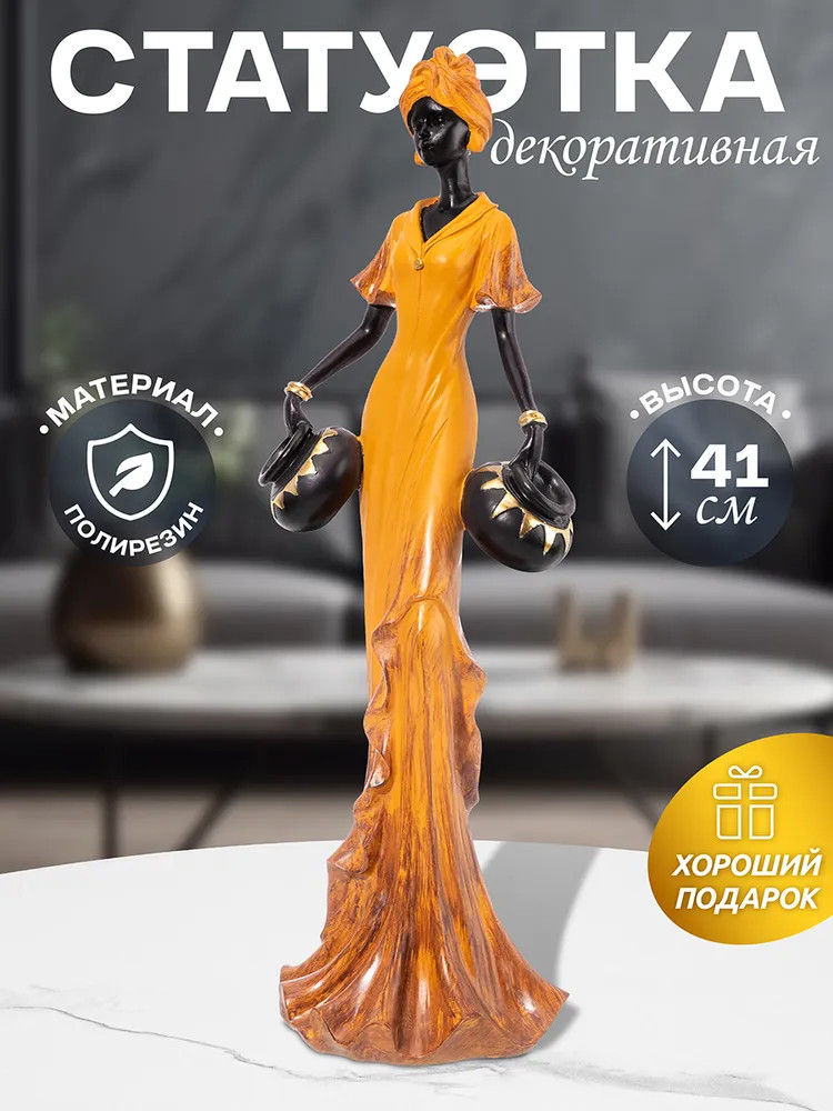 Elan Gallery Статуэтка «Африканская девушка с кувшинами»В данный момент этот товар отсутствует в продаже. Возможно, у нас найдется аналогичный или похожий товар здесь. Декоративная статуэтка «Африканская девушка с кувшинами» преобразит любое помещение. Размер изделия – 14х12,5х41,5 см. Выполнена из полирезина – современного материала, который славится своей лёгкостью, устойчивостью к влаге и солнечным лучам. Он не выделяет веществ и не имеет запаха. Полирезин легко поддаётся обработке, поэтому изделия из него отличаются своей реалистичностью и проработанной детализацией. Высокая стройная девушка одета в длинное платье цвета охры с оборками. На платье нанесены коричневые акценты, добавляющие ему глубины. На голове женщина носит тюрбан такого же цвета, дополненный большими серьгами. В обеих руках она несёт украшенные золотистыми элементами кувшины. Настольная фигурка дополнит и освежит антураж любой комнаты. Разместите её на столе и полке или создайте композицию с другими статуэтками и декоративными элементами. Статуэтка, выполненная в тёплых тонах, привнесёт уют в ваш дом или дачу. Не рекомендуется применять абразивные моющие средства. В коллекции бренда Elan Gallery вы найдёте множество как ярких, так и нежных декоративных украшений – каждый обязательно подберёт сувенир на свой вкус. Они станут чудесным подарком для родных, близких и коллег. Наполните пространство вокруг себя красотой и радостью! |