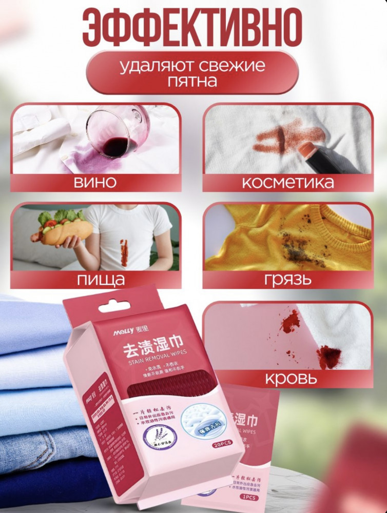 Очищающие салфетки для одежды и поверхностей+12
