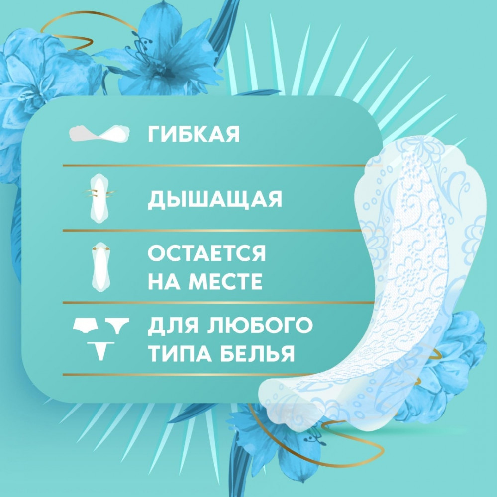 • тонкие и гибкие ежедневные гигиенические прокладки, повторяющие каждое ваше движение;