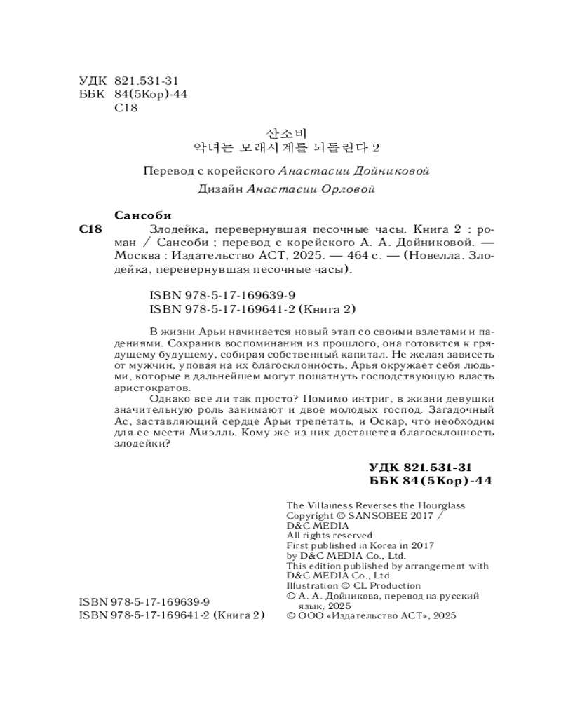 💳 Оплатить за товар можно при получении 🇰🇿 Есть бесплатная доставка по Казахстану от 1 дня 🎁 Копите бонусы с каждой покупки Серия: Новелла. Злодейка, перевернувшая песочные часы В жизни Арьи начинается новый этап со своими взлетами и падениями. Сохранив воспоминания из прошлого, она готовится к грядущему будущему, собирая собственный капитал. Не желая зависеть от мужчин, уповая на их благосклонность, Арья окружает себя людьми, которые в дальнейшем могут пошатнуть господствующую власть аристократов. Однако все ли так просто? Помимо интриг, в жизни девушки значительную роль занимают и двое молодых господ. Загадочный Ас, заставляющий сердце Арьи трепетать, и Оскар, что необходим для ее мести Миэлль. Кому же из них достанется благосклонность злодейки? |