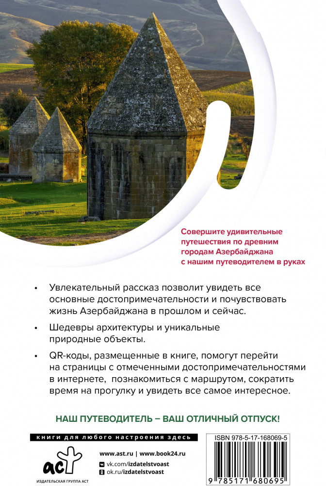 💳 Оплатить за товар можно при получении 🇰🇿 Есть бесплатная доставка по Казахстану 🎁 Копите бонусы с каждой покупки Серия: Маршруты для путешествий. Путеводители Если вы хотите за время отпуска увидеть самые разные природные красоты и редких животных, насладиться морем и понежиться на пляже, побывать в высокогорье, вкусить ароматы экзотических садов и отведать новые блюда, а еще познакомиться с древними и современными шедеврами архитекторов, историческими памятниками и аутентичными традициями, то вам непременно нужно отправиться в поездку по Азербайджану. Эта книга поможет вам узнать о самых интересных достопримечательностях. QR-коды, размещенные перед каждой главой, ведут на страницы с картой в интернете, что поможет вам заранее спланировать маршрут поездки. Красочные фотографии, размещенные в книге, дадут представление о местности. Приглашаем вас совершить путешествие по Азербайджану! |