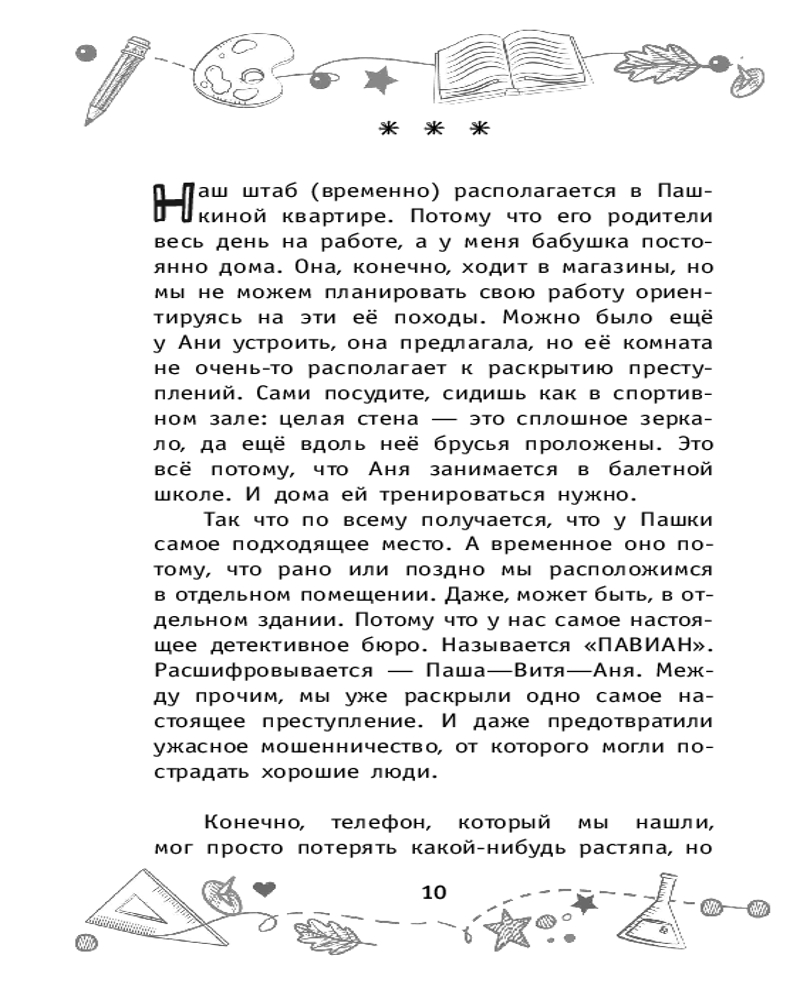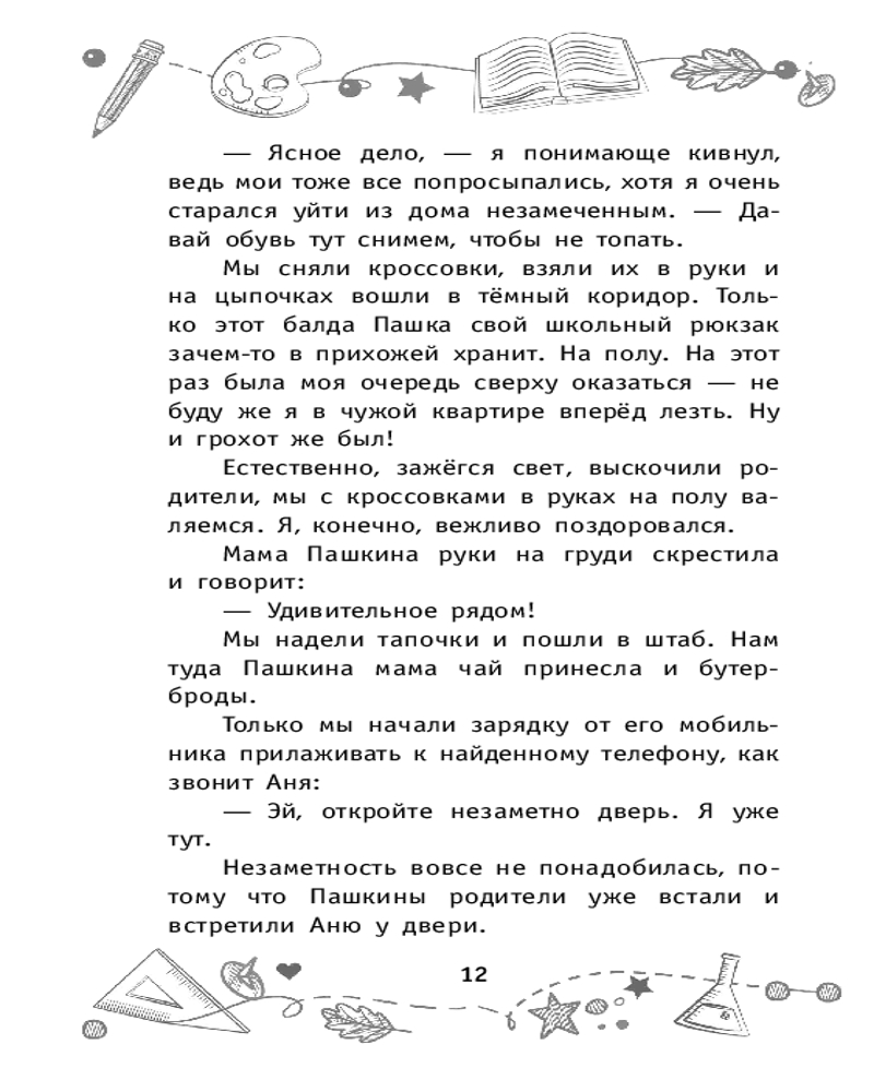 💳 Оплатить за товар можно при получении 🇰🇿 Есть бесплатная доставка по Казахстану от 1 дня 🎁 Копите бонусы с каждой покупки Серия: Школьники-детективы К чему приводят любопытство и найденный в парке телефон? Конечно, к настоящему расследованию. А когда дело оказывается в руках таких профессионалов, как Витя, Пашка и Аня, даже самые предсказуемые, казалось бы, действия получают неожиданные обороты. А подозреваемые?.. Требуют особого внимания и тщательной проверки. Устранение конкурентов, подделка документов, тайные заговоры — всё это происходит не в шпионском детективе, а на самом деле! Музыкальный конкурс с уникальной скрипкой в качестве приза на грани срыва, а тут такое... Ребятам предстоит придумать очень хитрый план, чтобы у преступников не осталось ни единого шанса осуществить задуманное. |