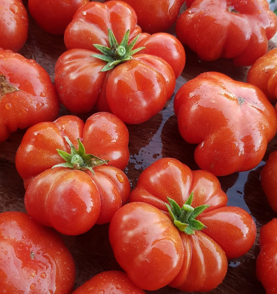 Детерминант, 0,8-1,3м. Среднеспелый. Плоды — маленькие ребристые бифштексы, ярко-красные, многокамерные. Масса 80-120 грамм. Насыщенный сбалансированный вкус с преобладанием сладости. Очень урожайный. |