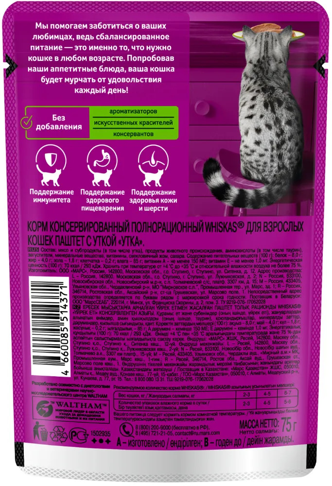 Whiskas Набор паучей для кошек «Паштет с уткой»