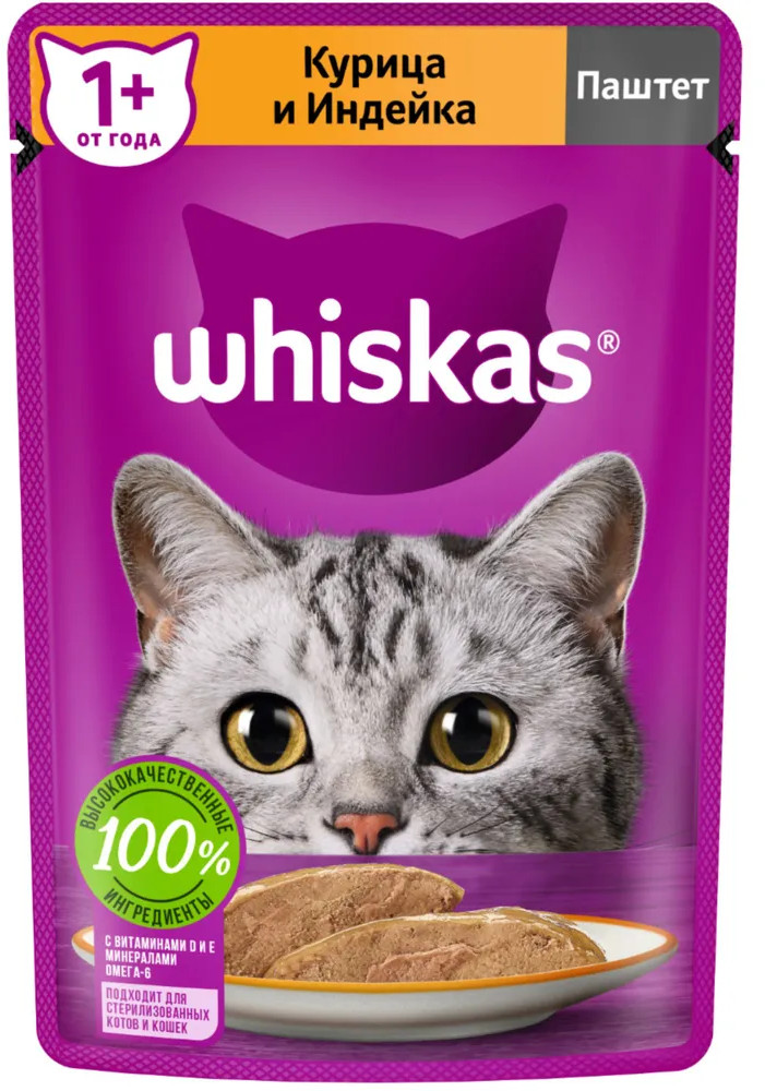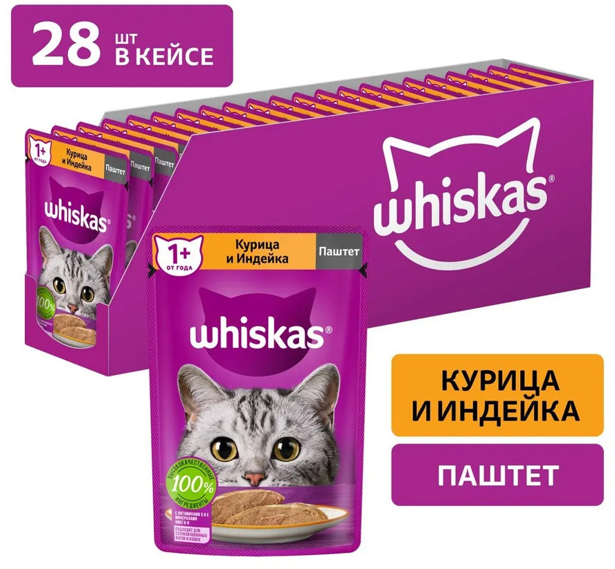 Whiskas Набор паучей для кошек «Паштет с курицей и индейкой»