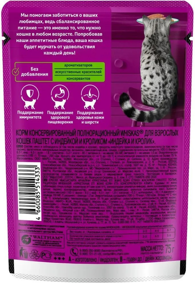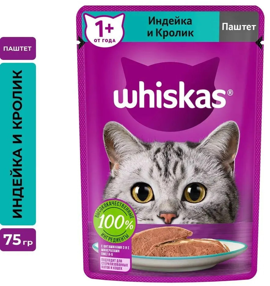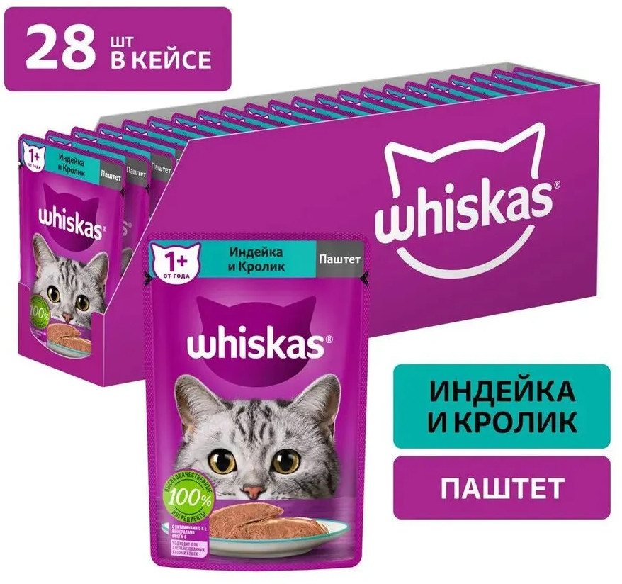 Whiskas Набор паучей для кошек «Паштет с индейкой и кроликом»