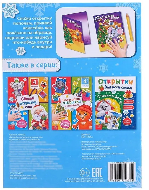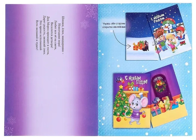 Книга с наклейками «Сделай новогоднюю открытку сам»-35% +5
