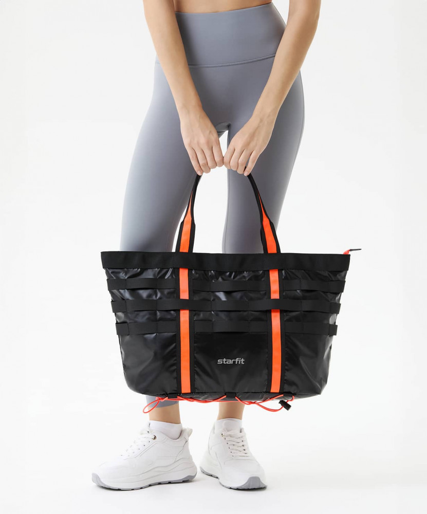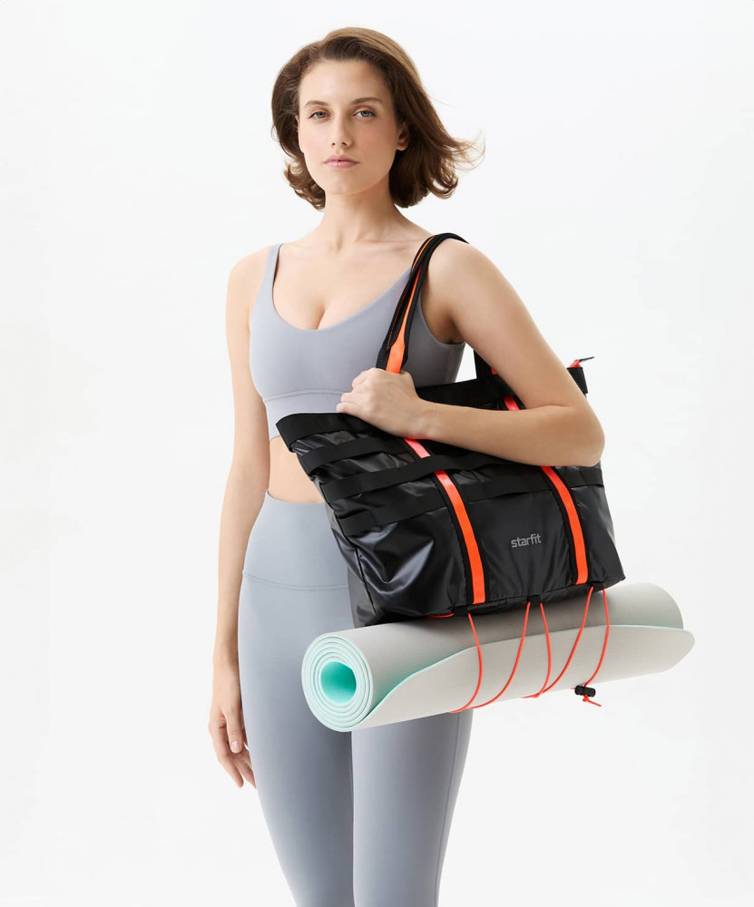 Спортивная сумка Style бренда Starfit — универсальная модель, которая оптимально подходит для тренировок, путешествий и повседневного использования. Это самая компактная модель в коллекции 2024 — ее объем составляет всего 19 литров, позволяя при этом удобно разместить в ней необходимую одежду и инвентарь. А эластичные компрессионные петли, расположенные на дне сумки, предназначены для фиксации коврика для фитнеса, йоги или пилатеса и помогают освободить руки от громоздкого аксессуара.